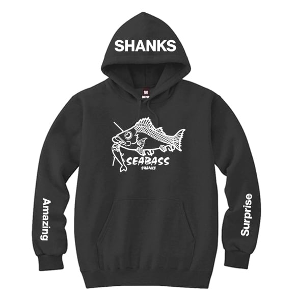 【送料無料】Seabass hoodie☆シーバスルアーの登場☆ルアーがルアーを捕食☆SHANKSならではのデザインです☆海釣り!釣りTシャツ!ルアー!釣りT!釣りガール!釣りパーカー!カサゴ!バス釣り! | SHANKS